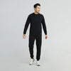 Our Cruze sweatshirt is a smart separate that you can wear under a jacket or over a button-up shirt for the days you need an extra layer of cozy. Say hello to our Pitch Black Cruze sweatshirt- your cozy athleisure pal.