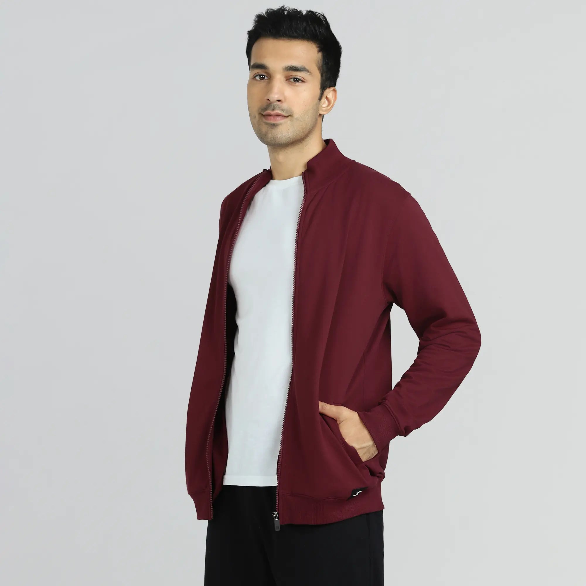 Our Cruze zip-up jacket is a perfect layer to wear over a casual tee or a button-down shirt for a cozy feel.