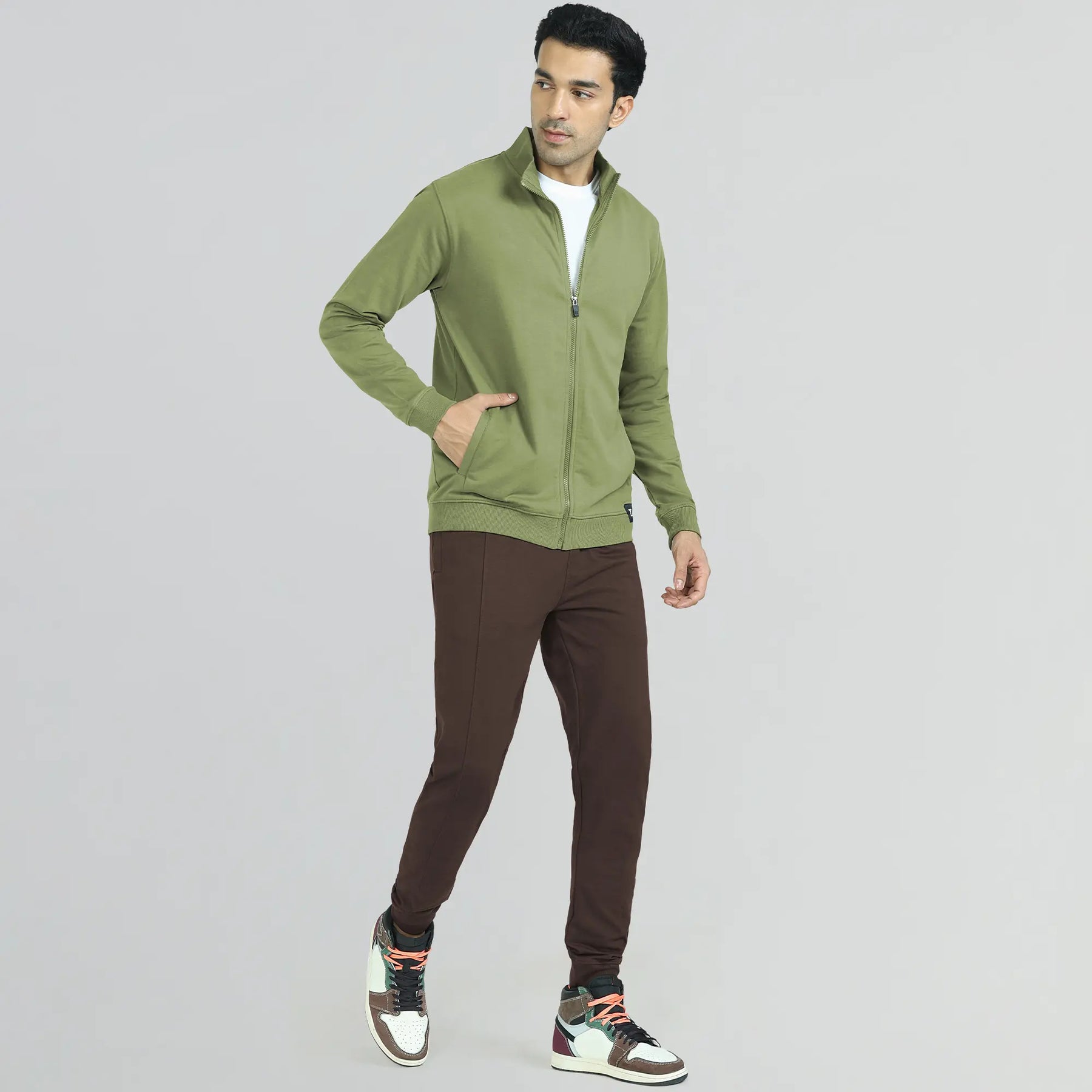 Say hello to our olive green Cruze zip-up jacket- your all new layering must-have.