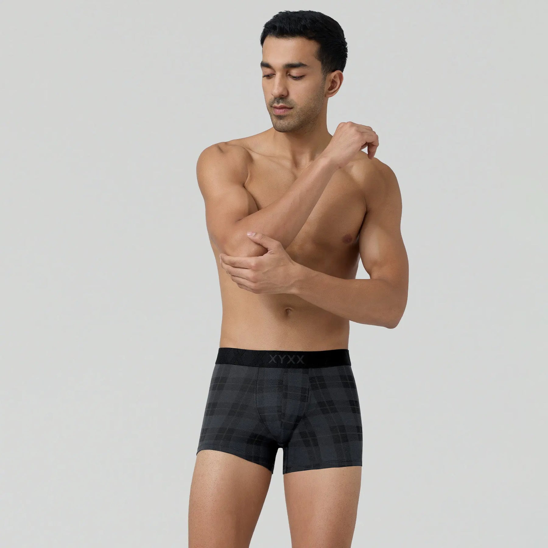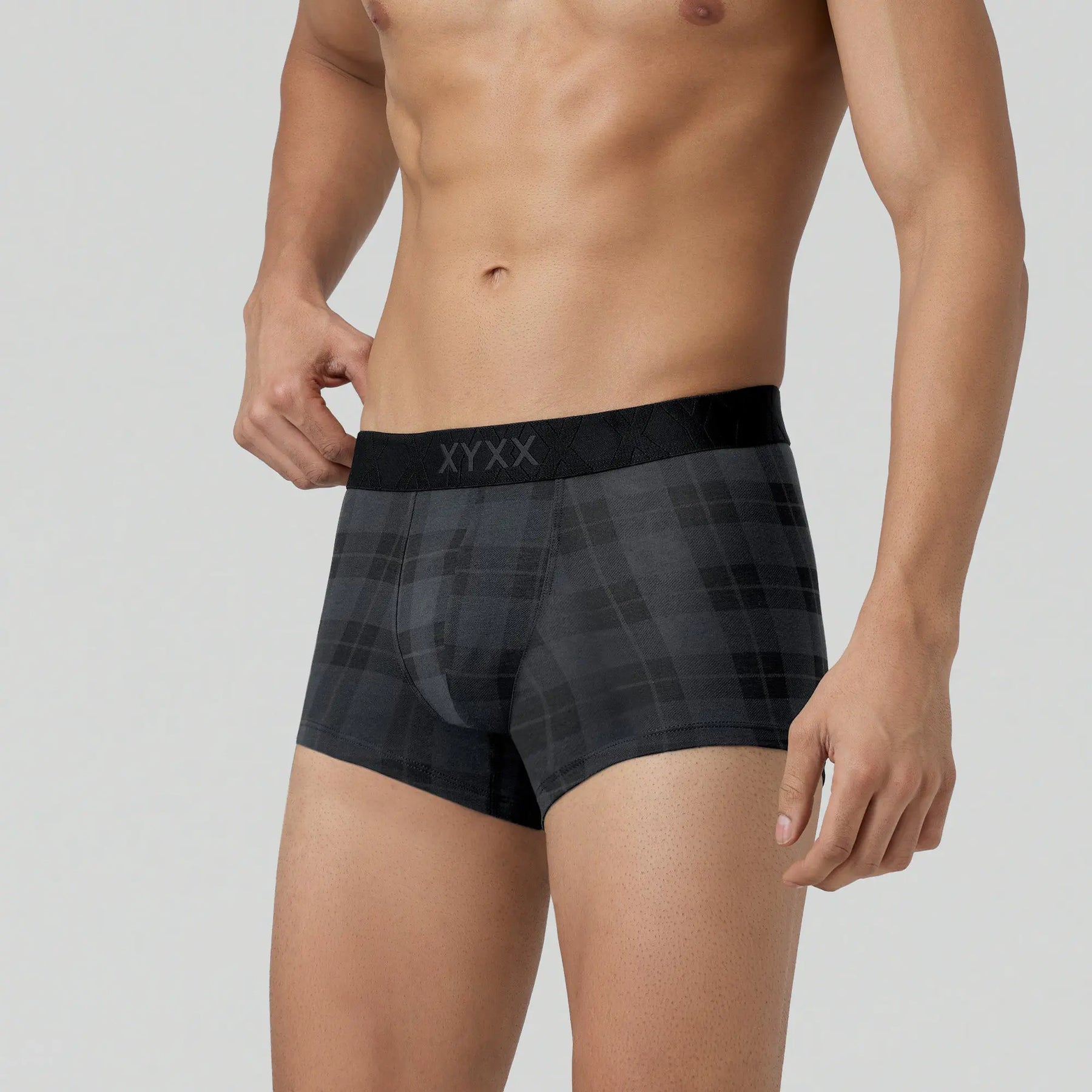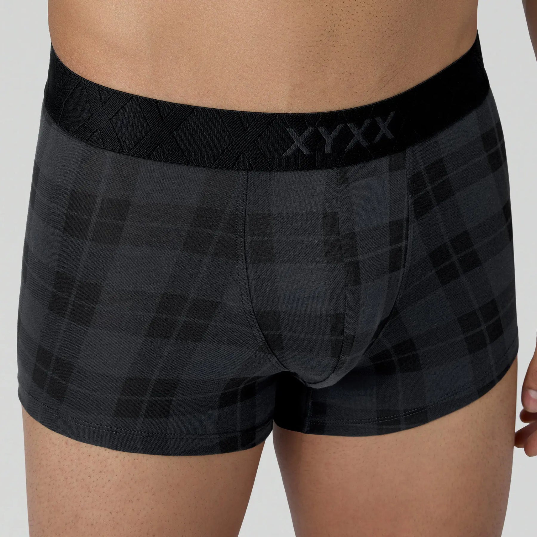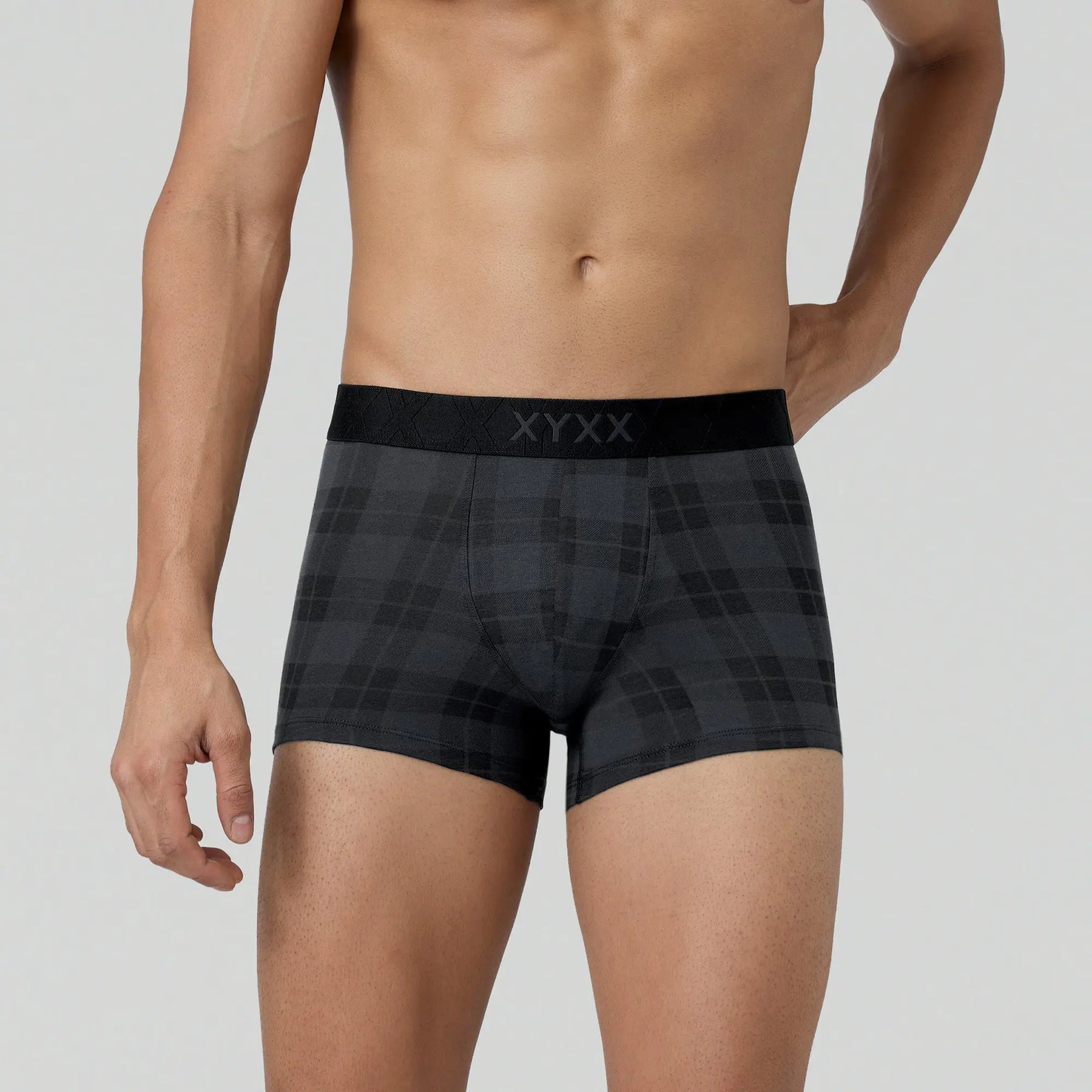 Say hello to our charcoal black Checkmate trunks - your partner-in-comfort for seasons to come.